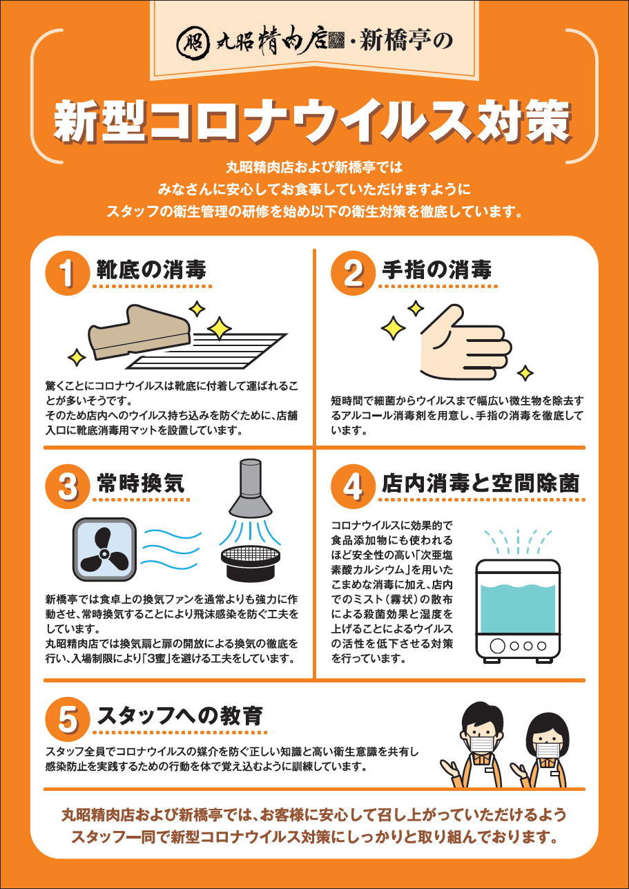 お客様に安心して、お食事してもらえるように、新型コロナウイルス対策をして、営業中しています。